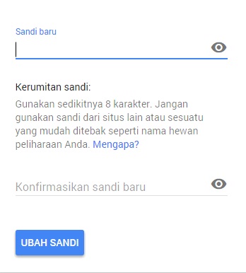 - pada tab password kalian klik pada bagian sebelah kanan seperti gambar pensil, kemudian masukkan kata sandi baru sesuai yang anda mau